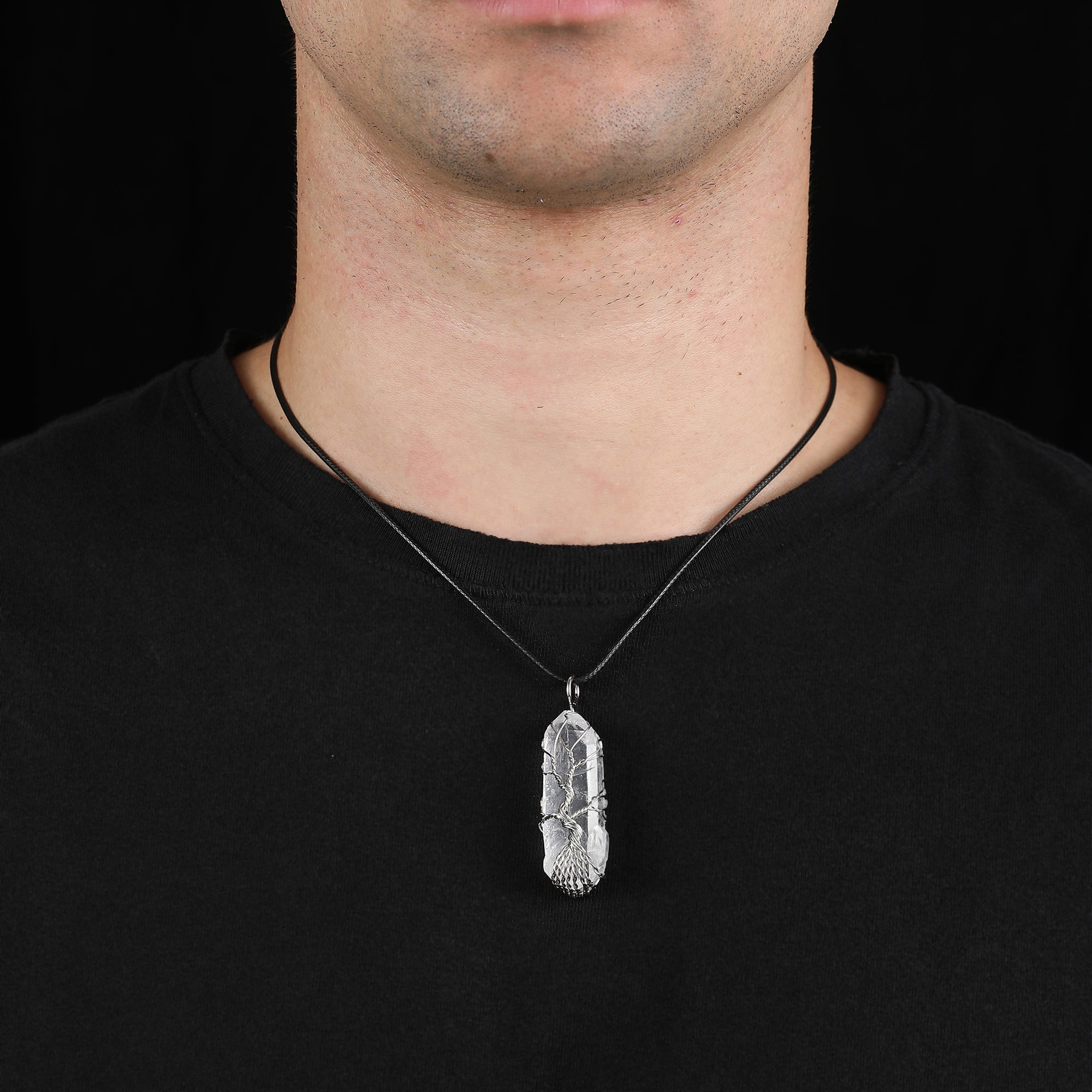 Natural Crystal Tree of Life Necklace Stainless Steel