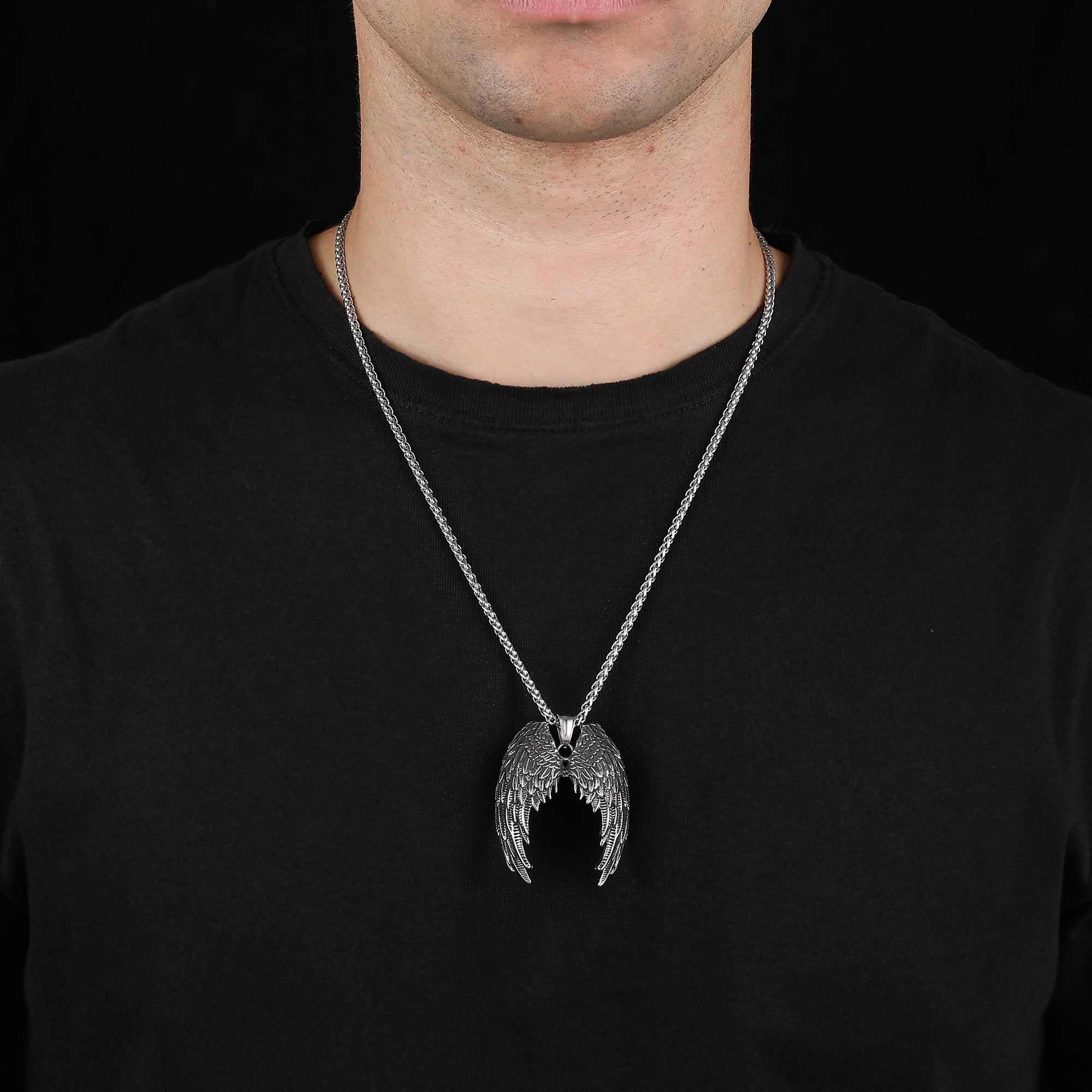 Vintage Angel Wings Stainless Steel Pendant & Chain