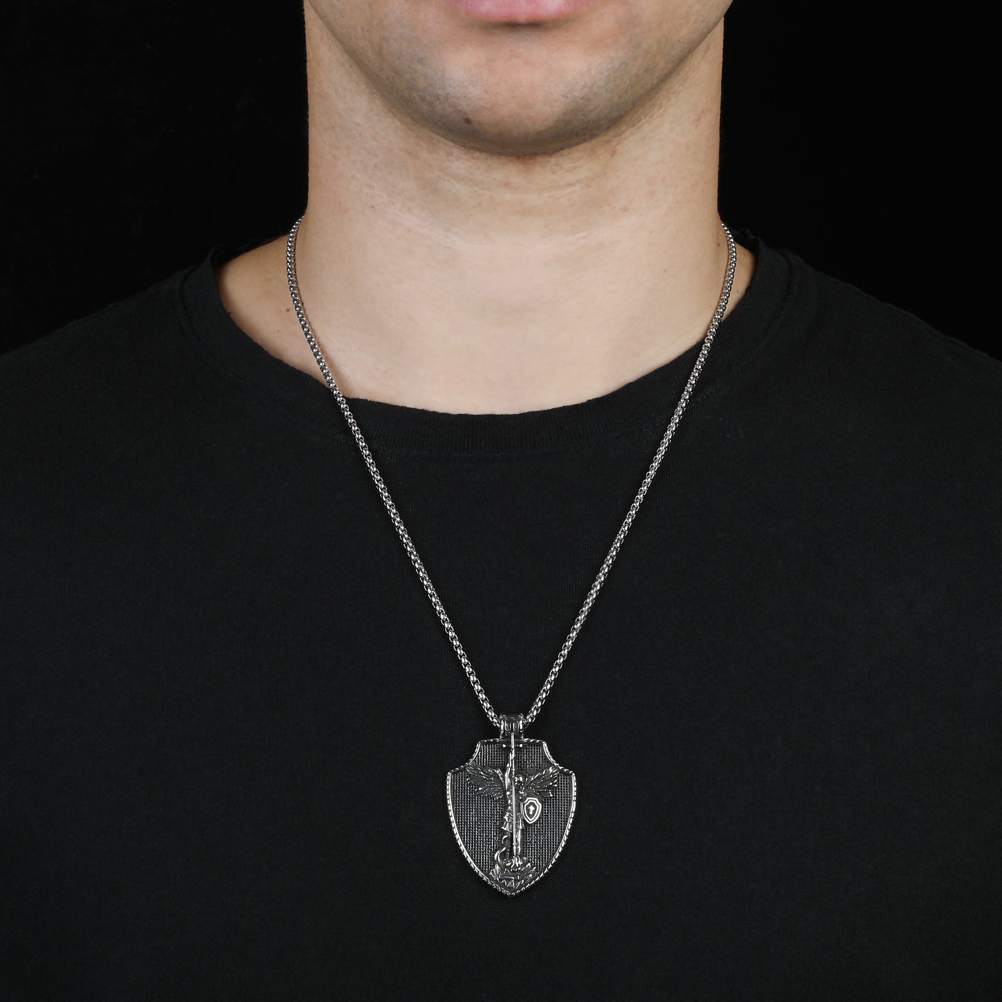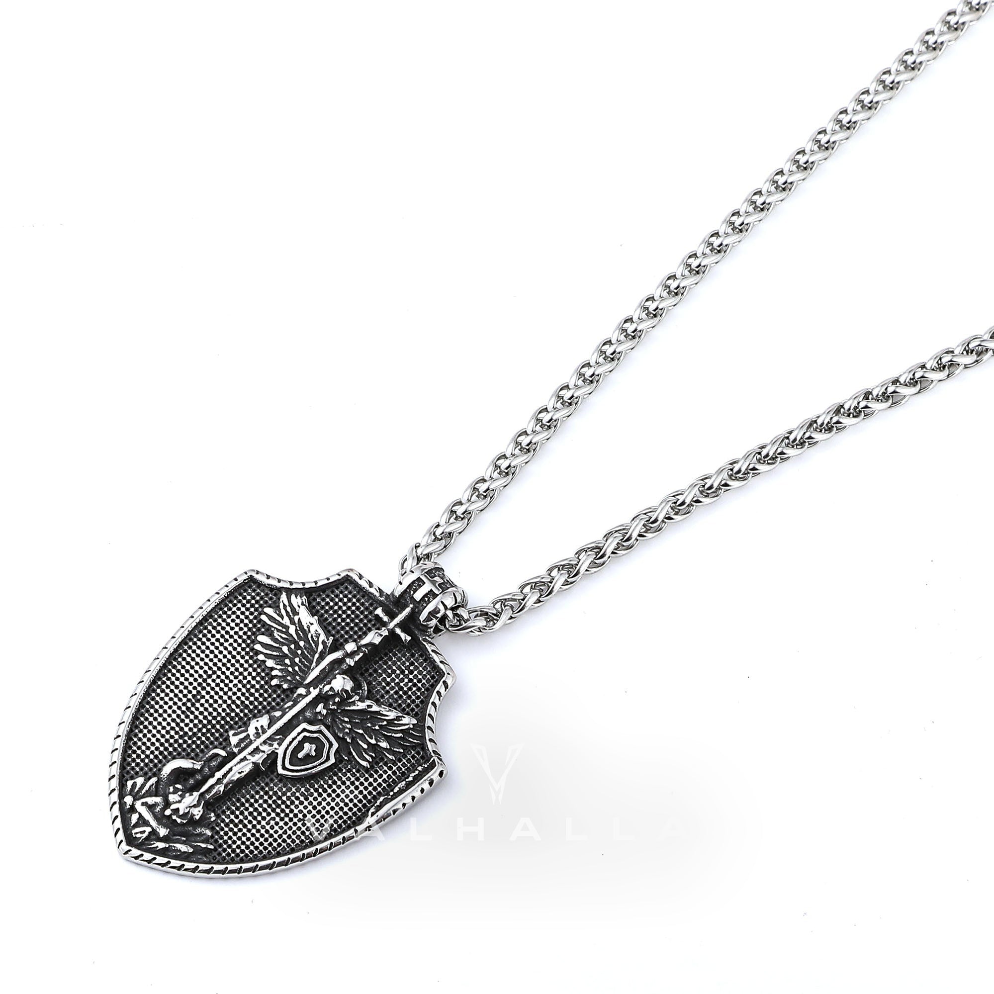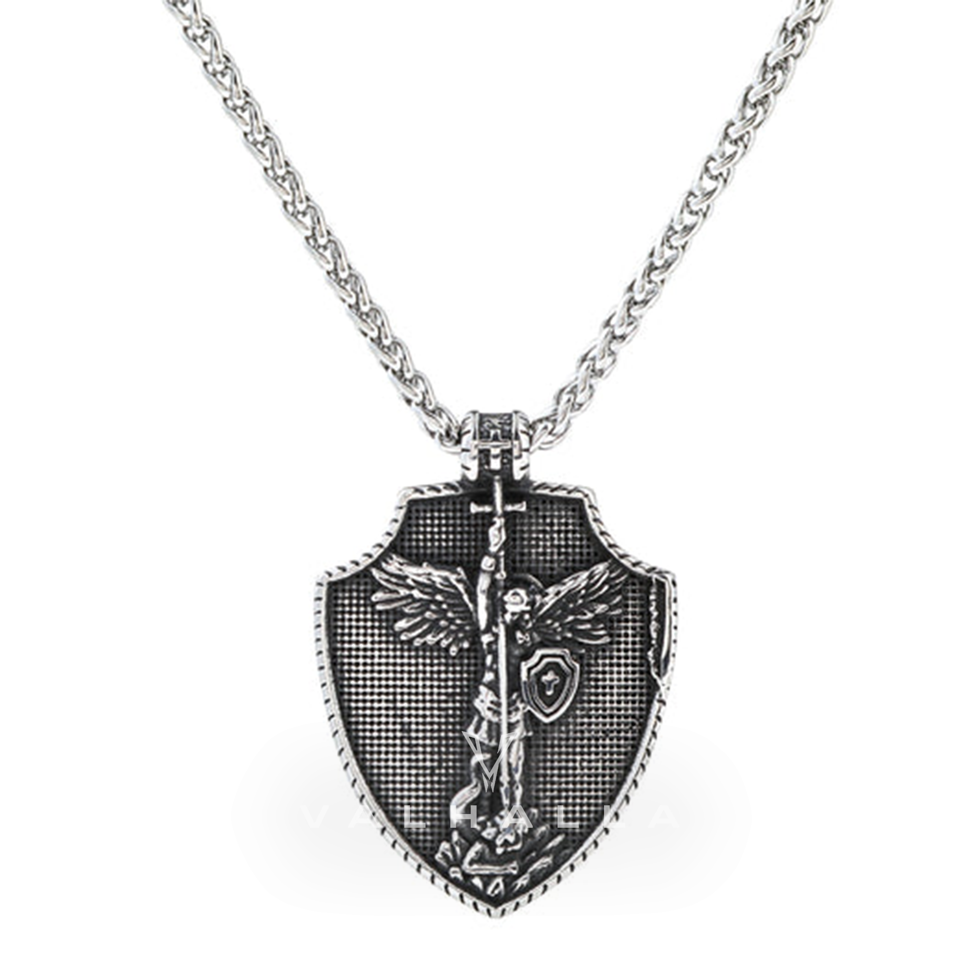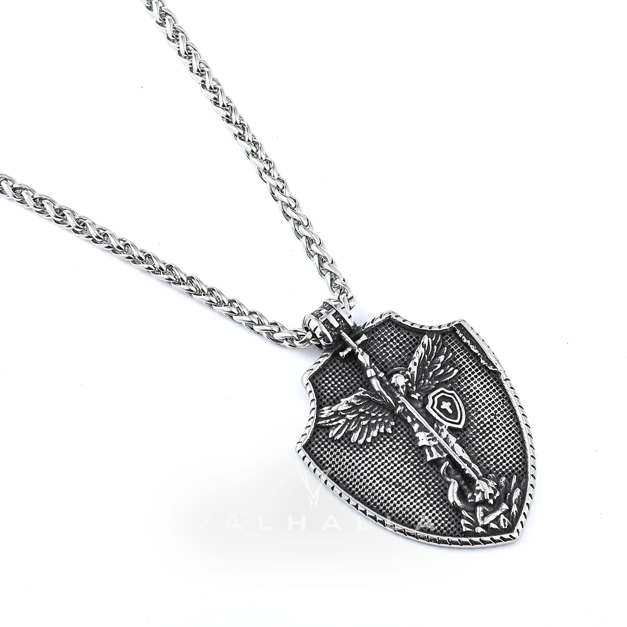 Angel Cross Shield Pure Tin Christ Necklace Stainless Steel