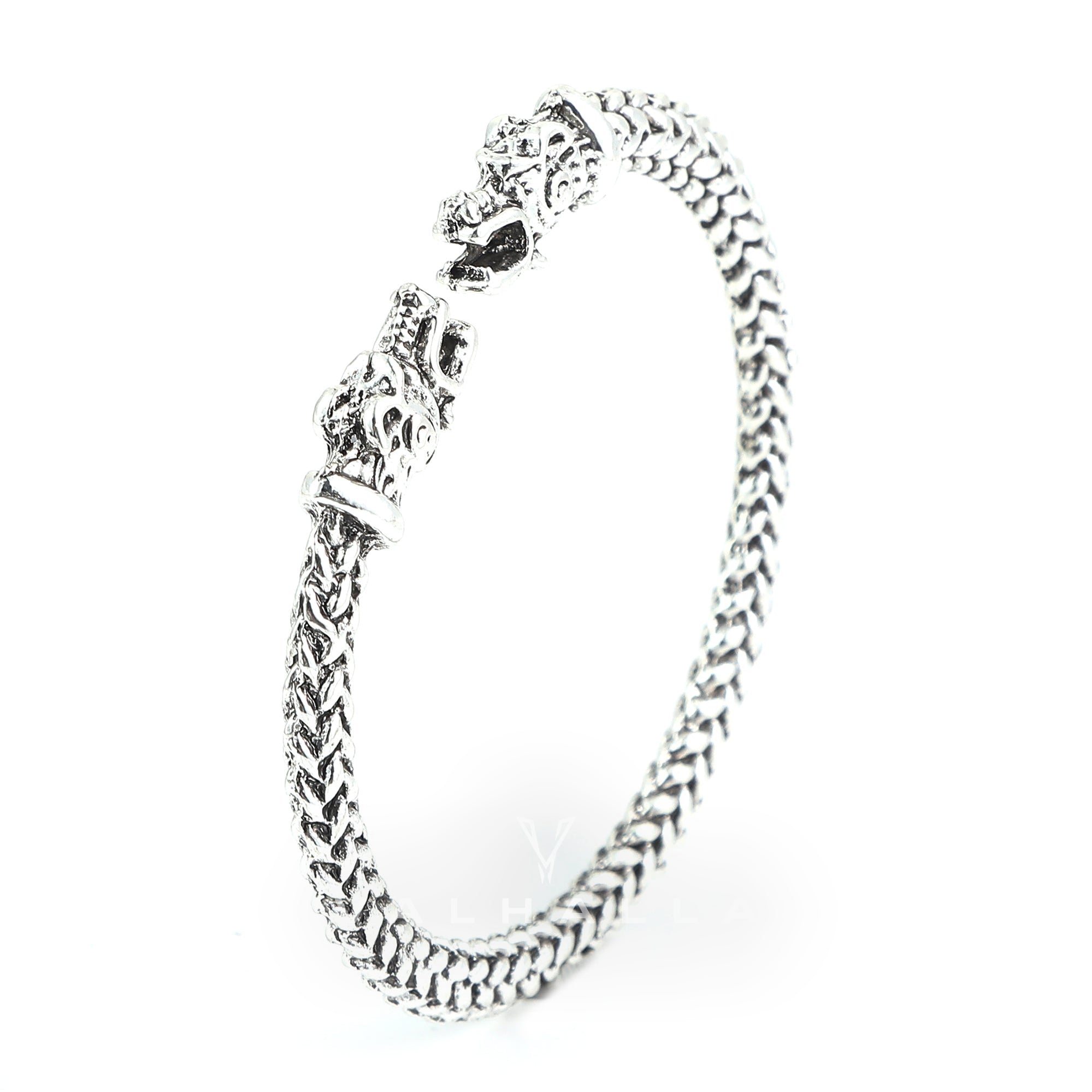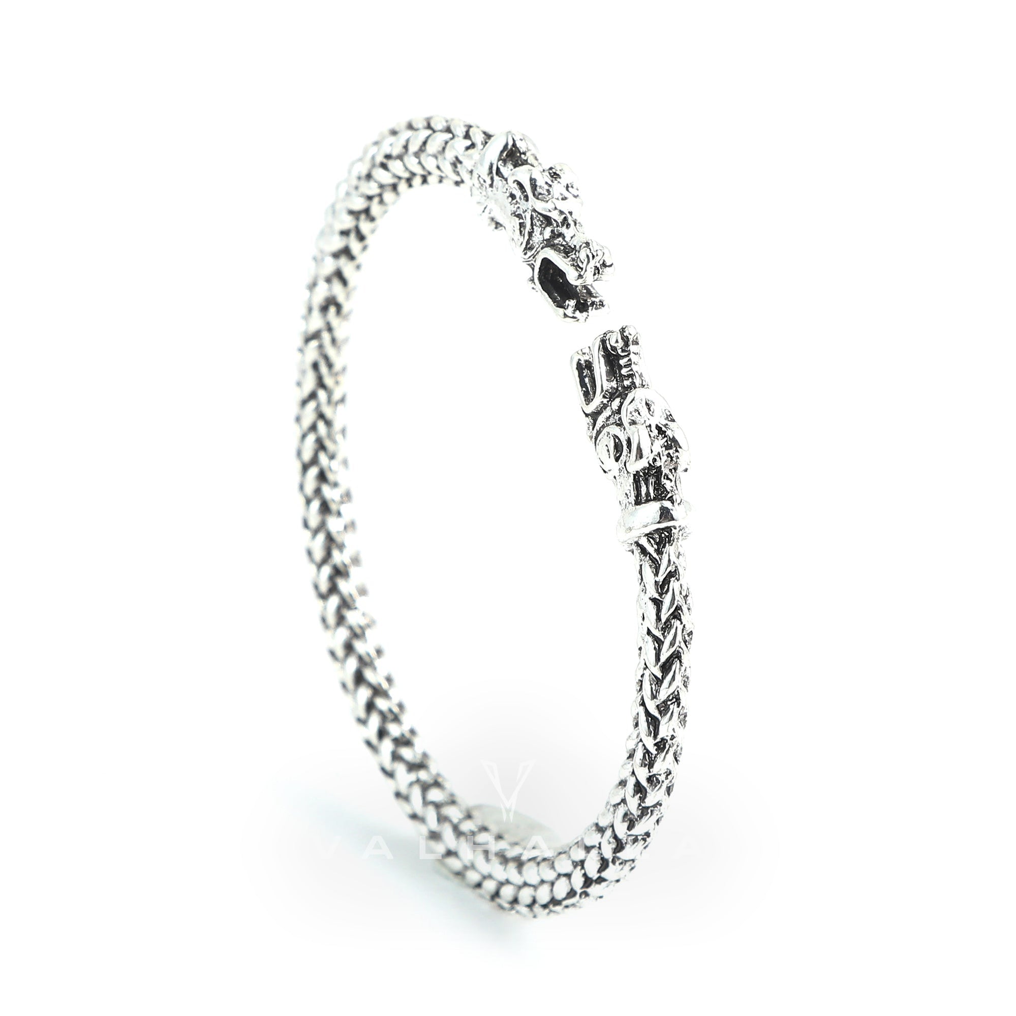 Small Handcrafted Stainless Steel Wolf Head Torc Bracelet