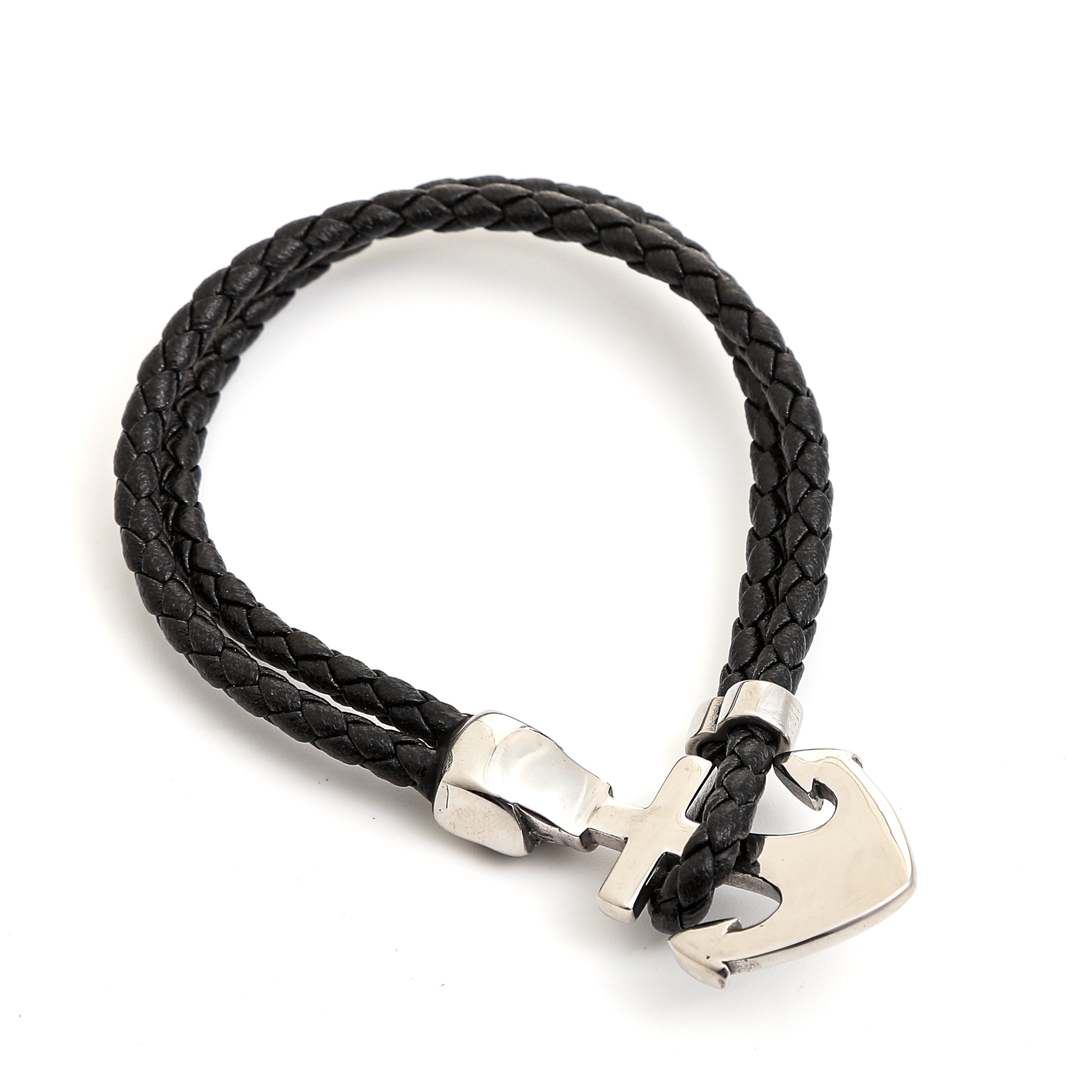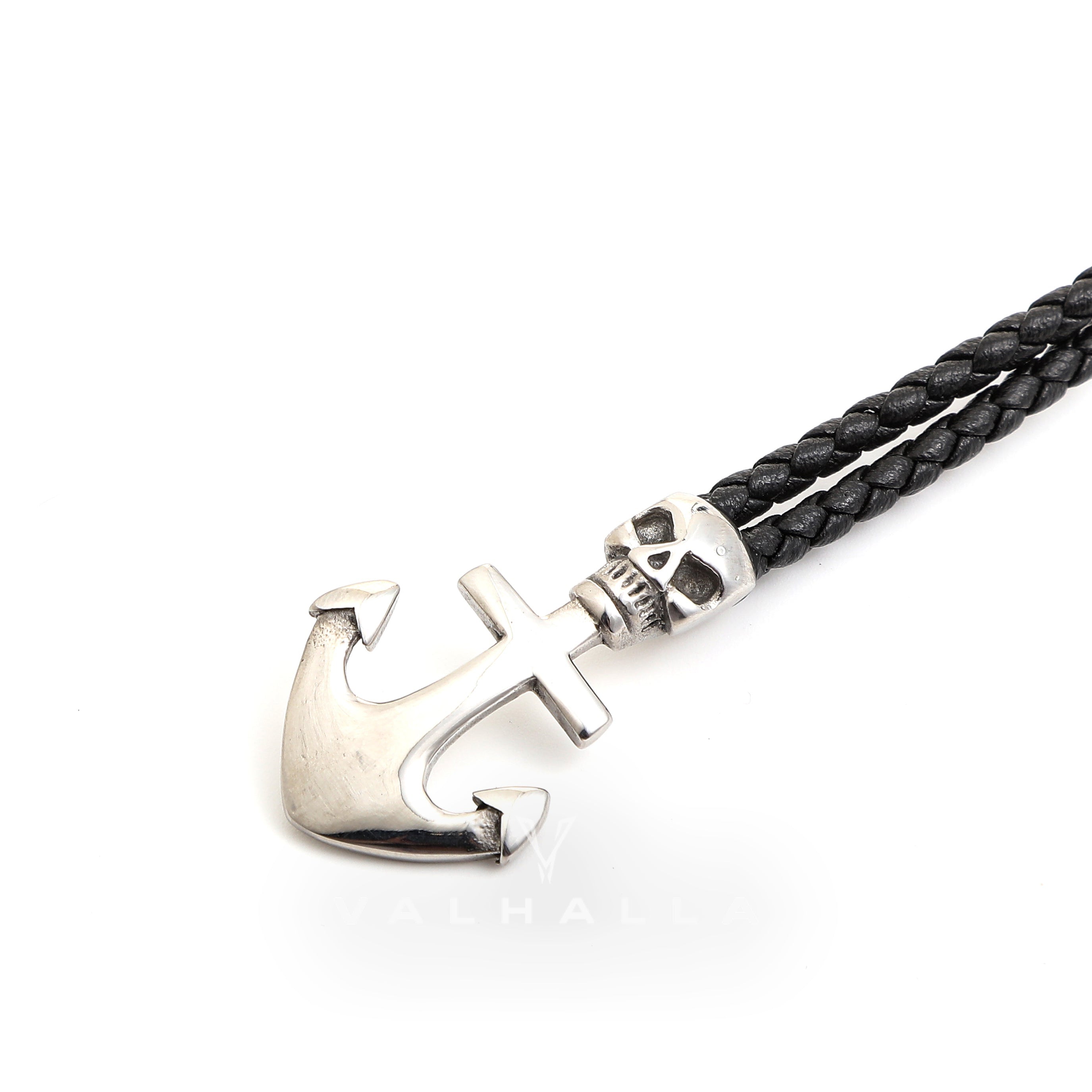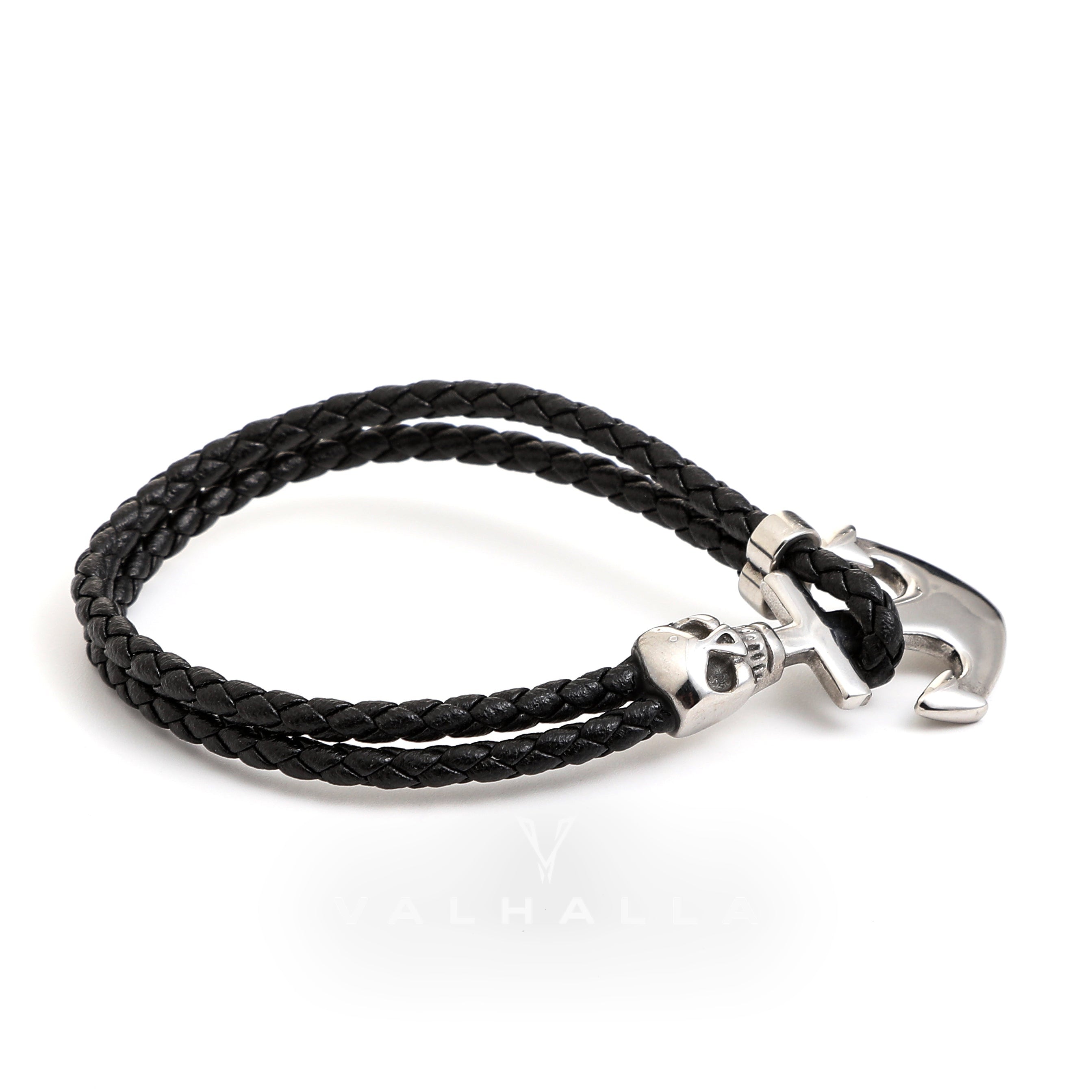 Anchor Skull Double Braided Leather Bracelet Stainless Steel