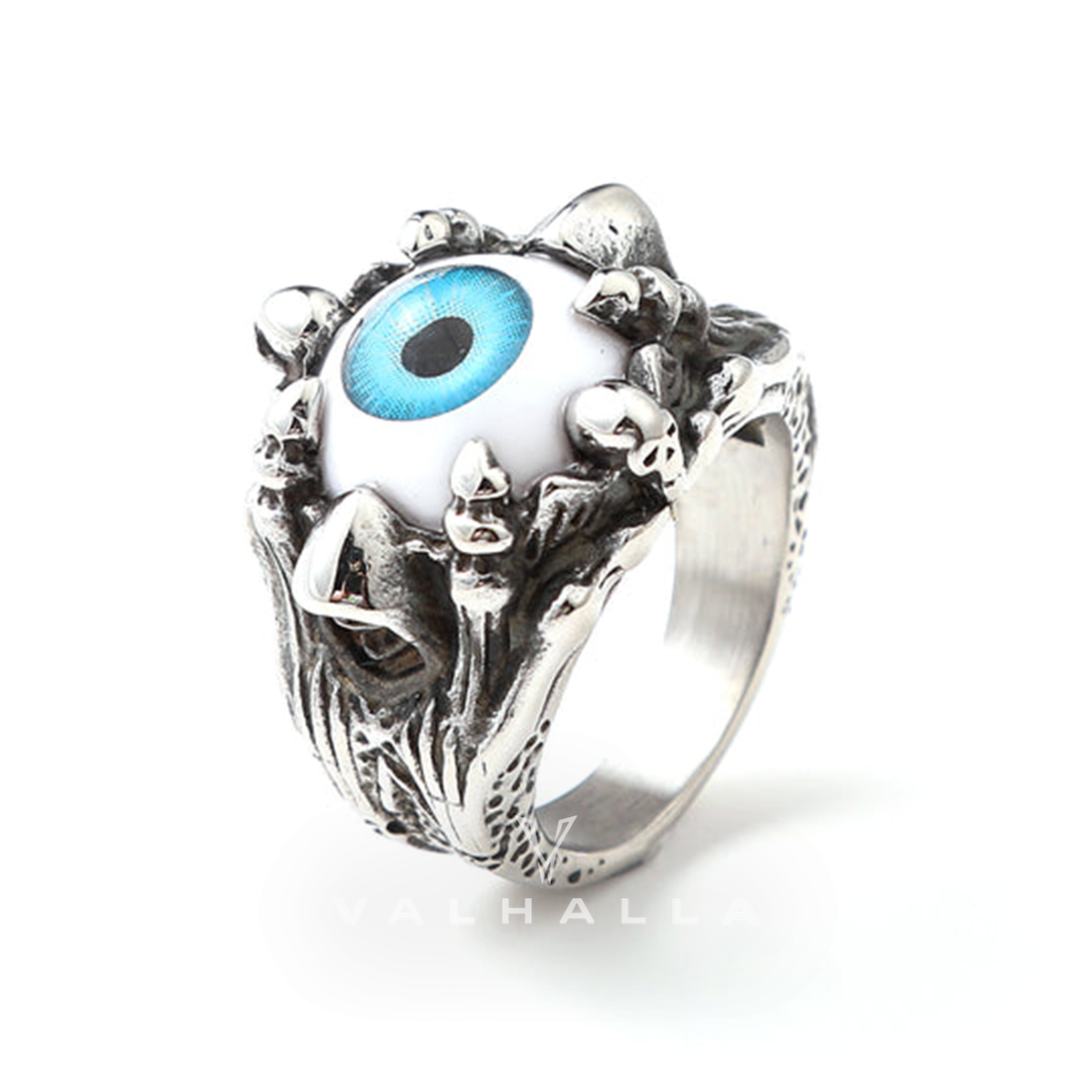 Greek Evil Eye Stainless Steel Skull Ring