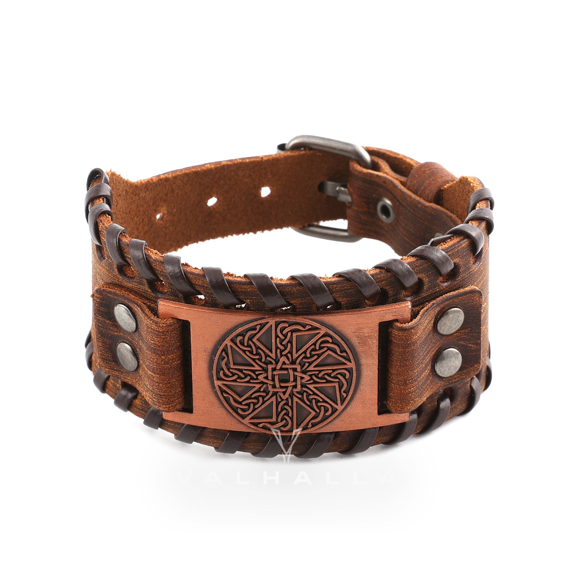 Sun Wheel Knot Amulet Leather Wristband Bracelet