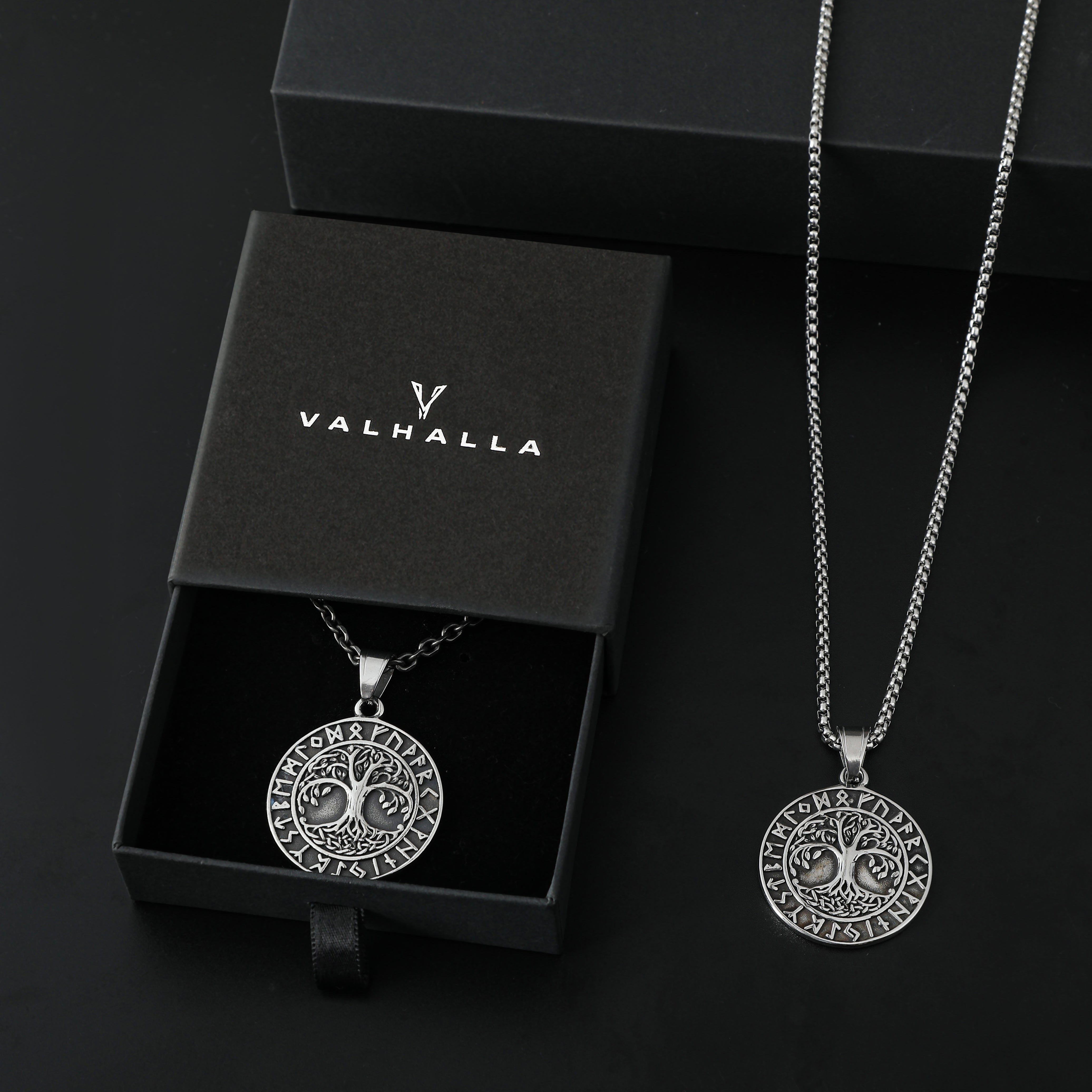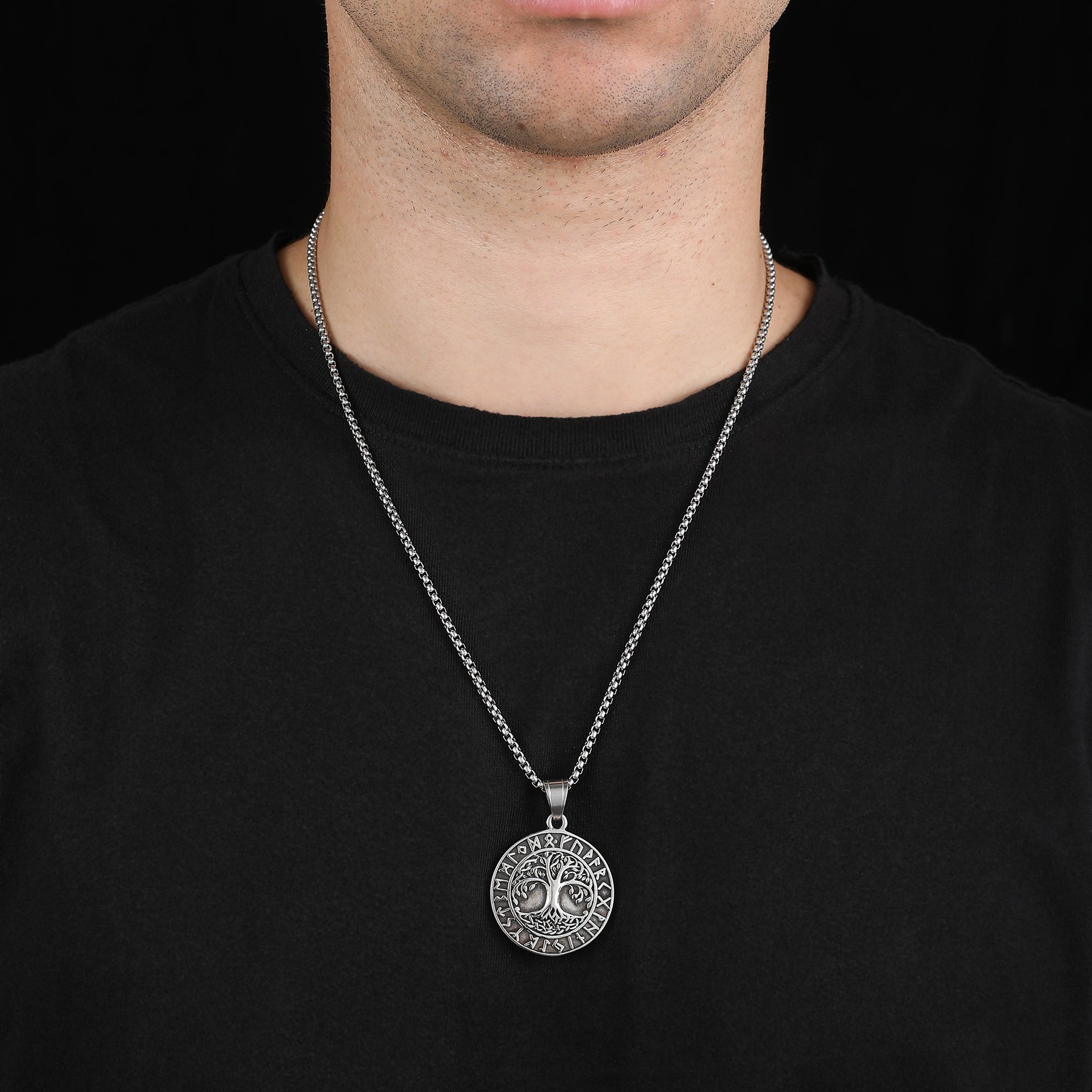 Tree of Life Runes Stainless Steel Viking Pendant & Chain