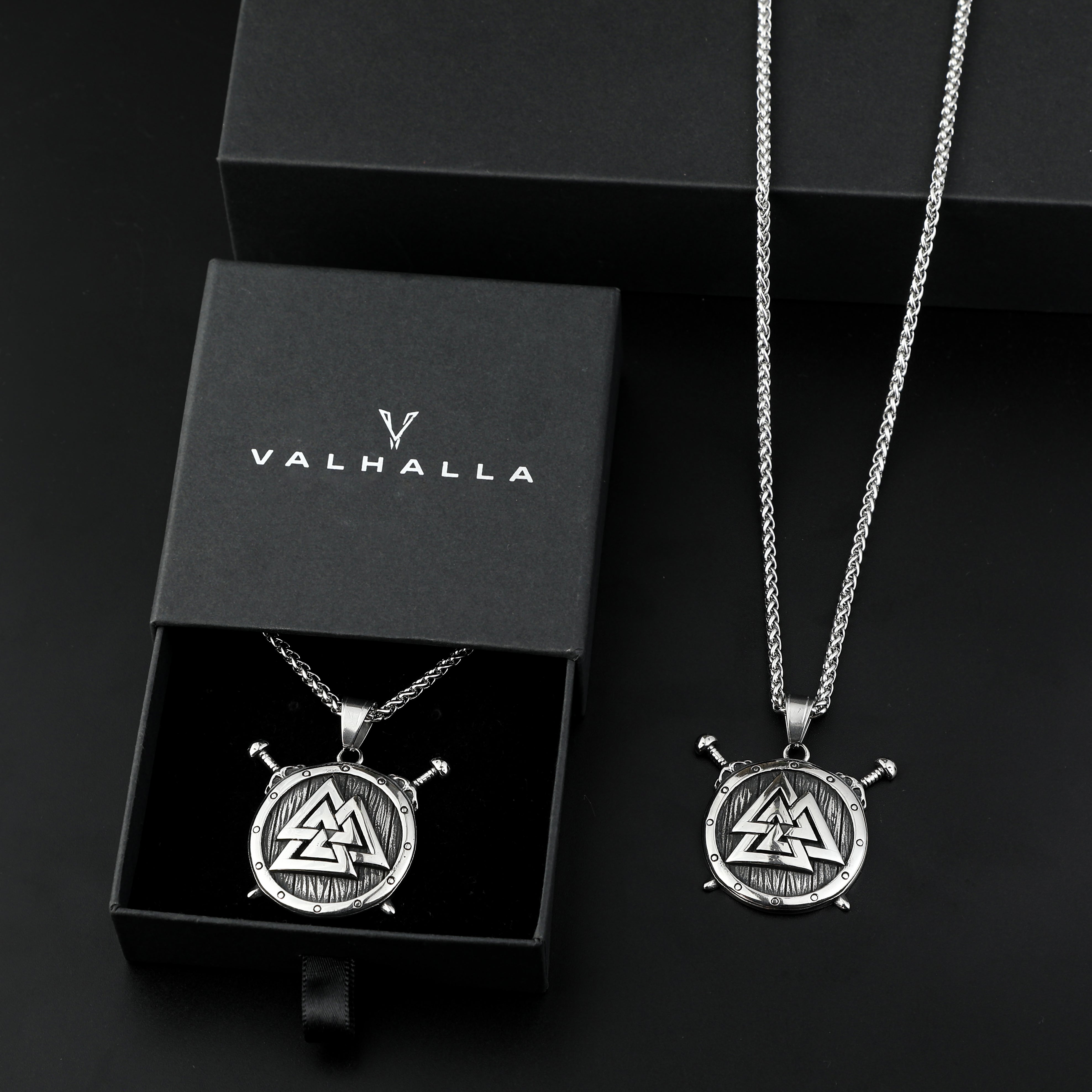 Stainelss Steel Viking Shield and Valknut Necklace Stainless Steel