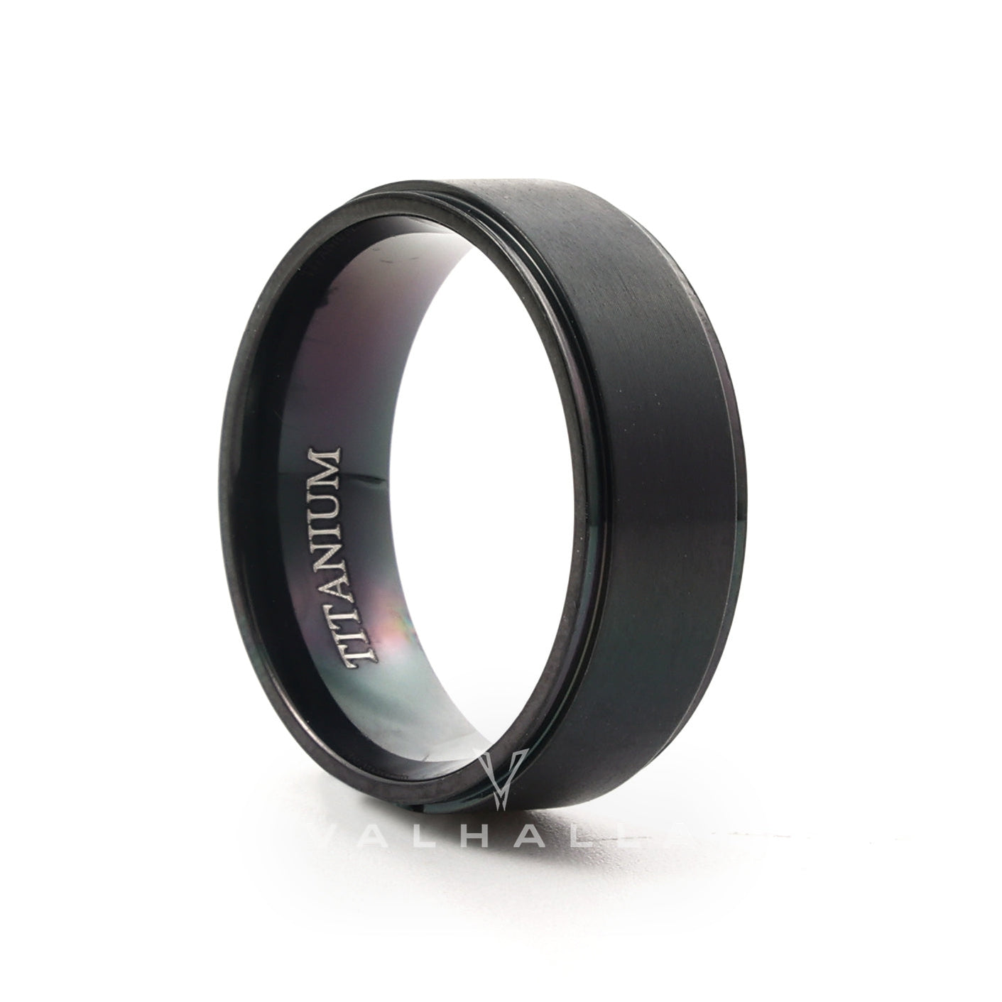 8mm Black Brushed Titanium Band Ring Stainless Steel