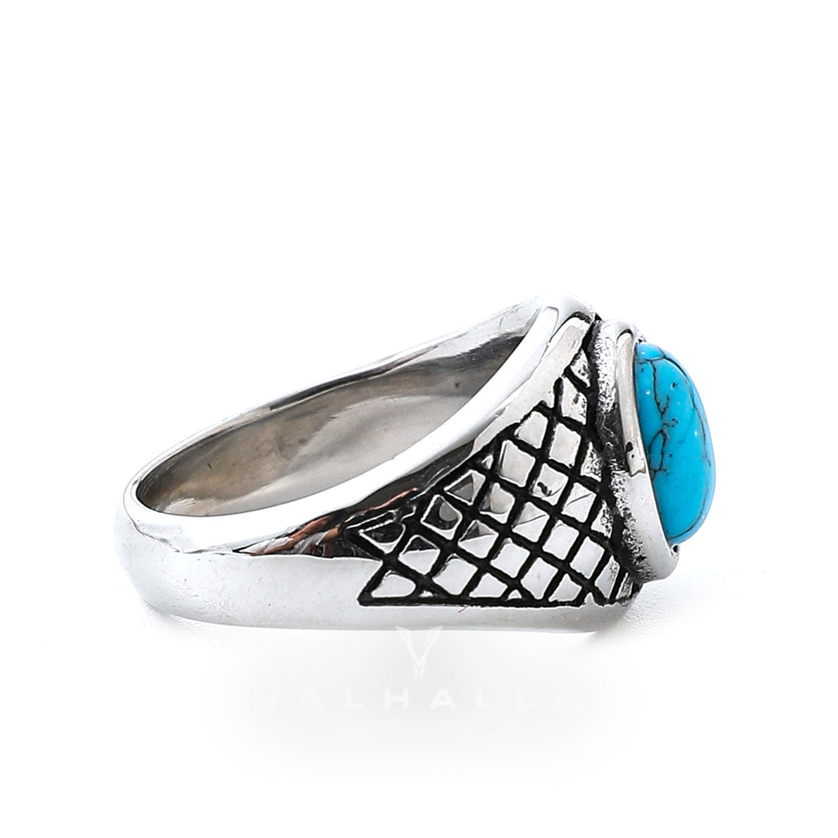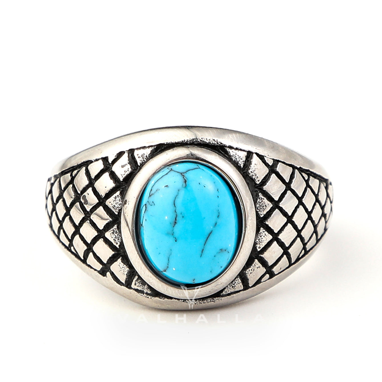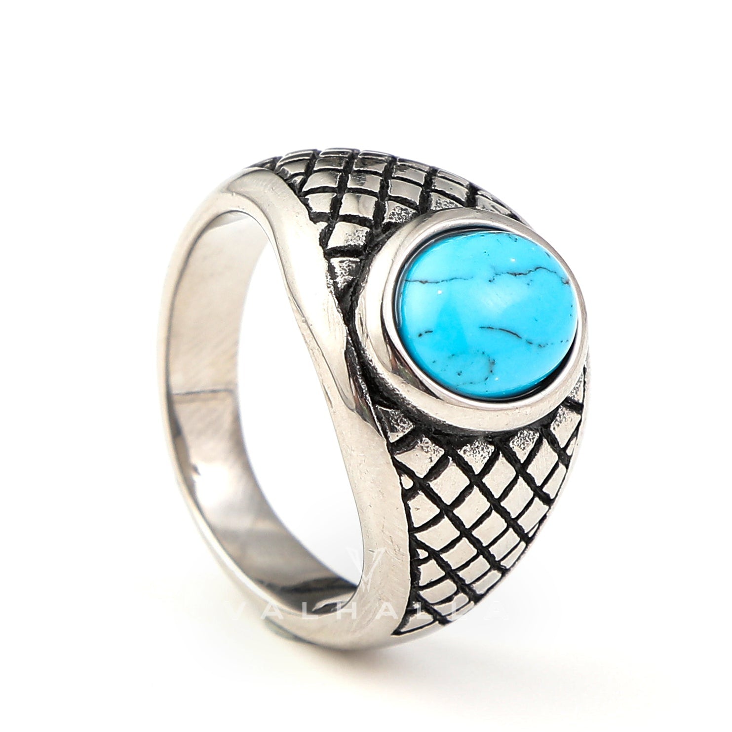 Plaid Stainless Steel Turquoise Ring